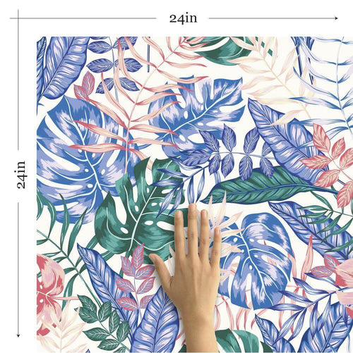 Make a statement and give your décor a big burst of color. This flashy floral wallpaper is vibrant and beautiful. The large scale design uses rich shades of blue, pink, green and red against a soft white backdrop. The contrast of colors provides added dimension, as well as a bold finish.