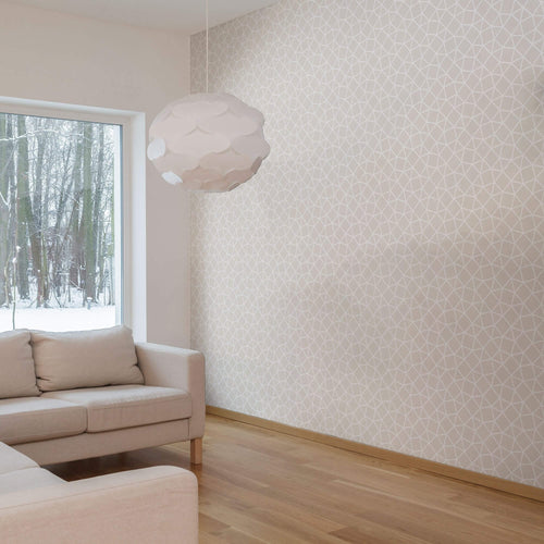 Illuminate any room in your home with this highly luminescent design. This wallpaper may feature a simplistic choice of color scheme, but its geometric design flaunts an intricate pattern that creates a contemporary feel on a shimmering background. This design is ideal for any dining or living room with natural lighting.