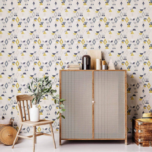 Basic geometry takes on a bejeweled look and the result is a showstopper! This stunning peel and stick wallpaper expertly positions triangles and rhombuses to create a dynamic composition. Color tones including black white gray and gold give this design a 3-dimensional feel that’s perfect for adding depth and interest to standard rooms. Use this unique removable wallpaper to take your clean-cut contemporary décor on a fun tangent.