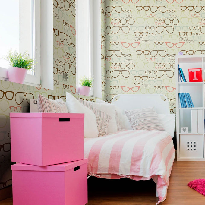 You won’t need a pair of glasses to see how awesome this wallpaper design is. This retro wallpaper fits the modern décor, and is both, fun and eye-catching, amplifying your teens wall with a chic choice of style, tone and color. With its’ unique mix of color, after a closer look, you’ll like what you see.